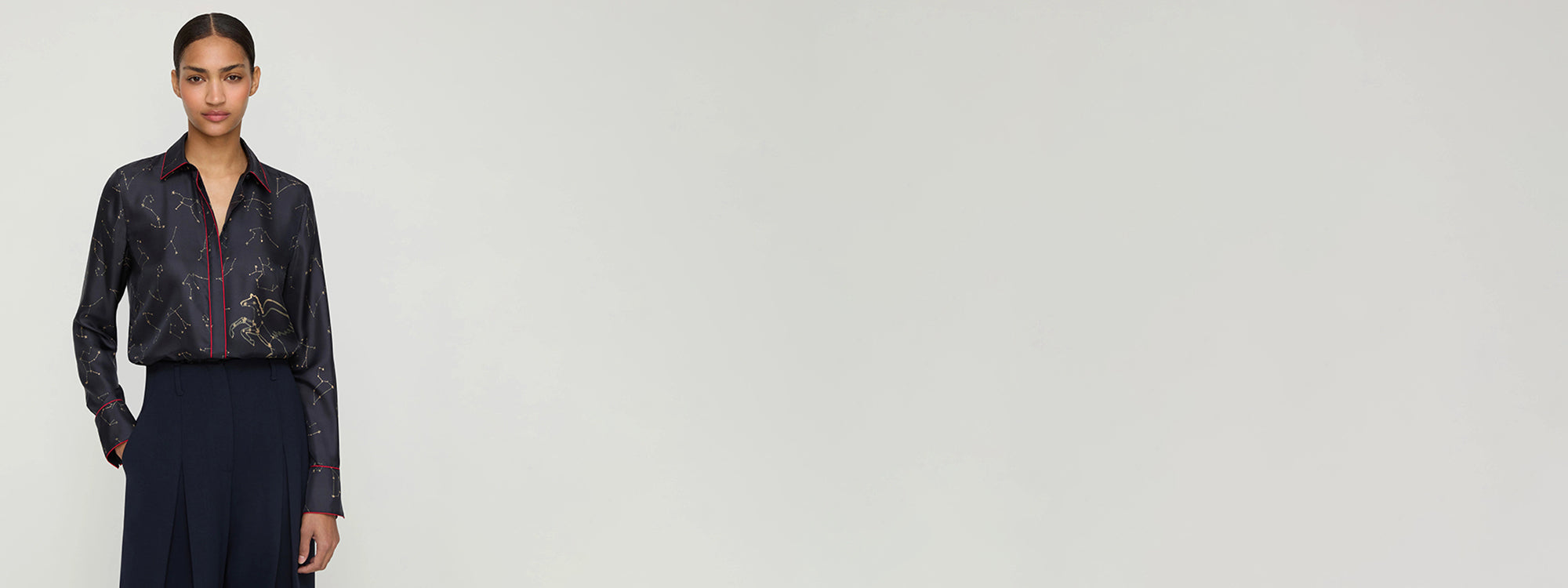 For Fall 25, Emmelle shares in the guiding aesthetic of Mi Jong Lee’s eponymous line. In a celebration of the spiritual and aesthetic powers of blue, you’ll discover classic jacket shapes refreshed in new jacquards, subtly detailed suiting in drapey lustrous crepe, and novel textural shirting and blouses.