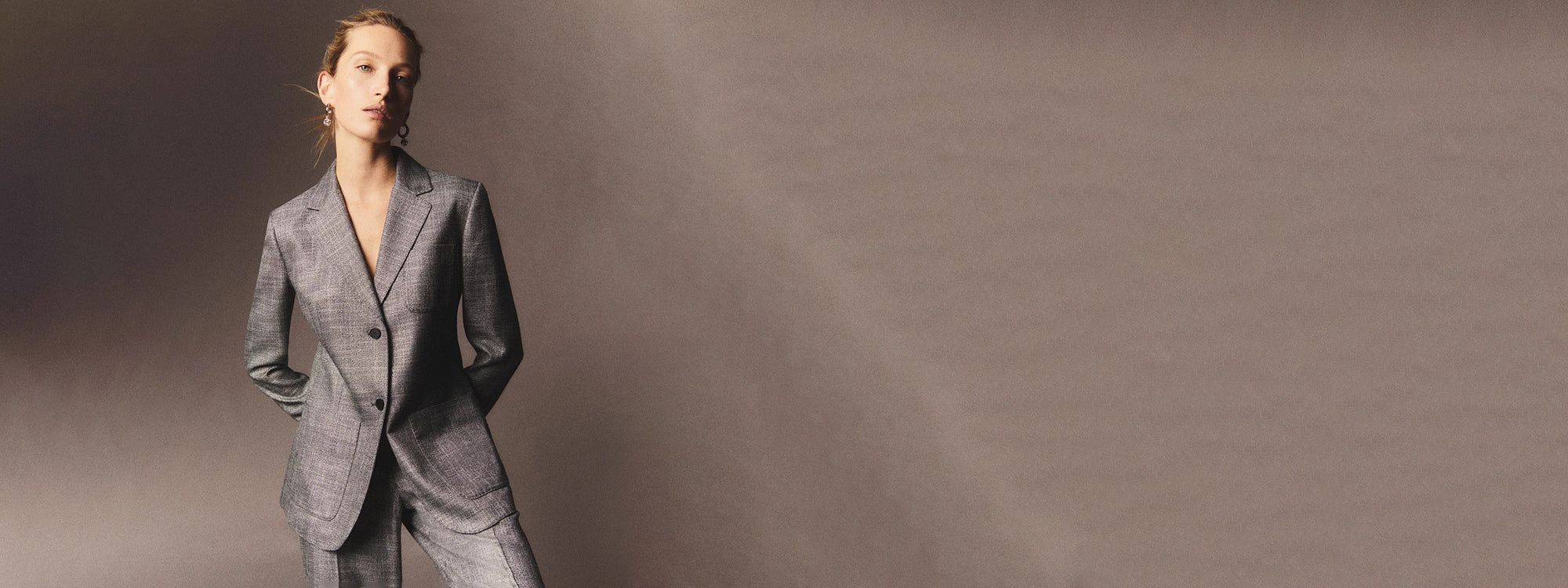 The Collection’s exclusive textured silks, boucles, and jacquards play off smooth wovens in seasonless stretch wool and acclaimed technical stretch. Head-to-toe Donegal tweed, organic cotton dobby, and cashmere offer understated luxe looks for work, social occasions, and home. Graphite and camel anchor a classic fall palette, vivified with rich greens, warm pink and cool blues.