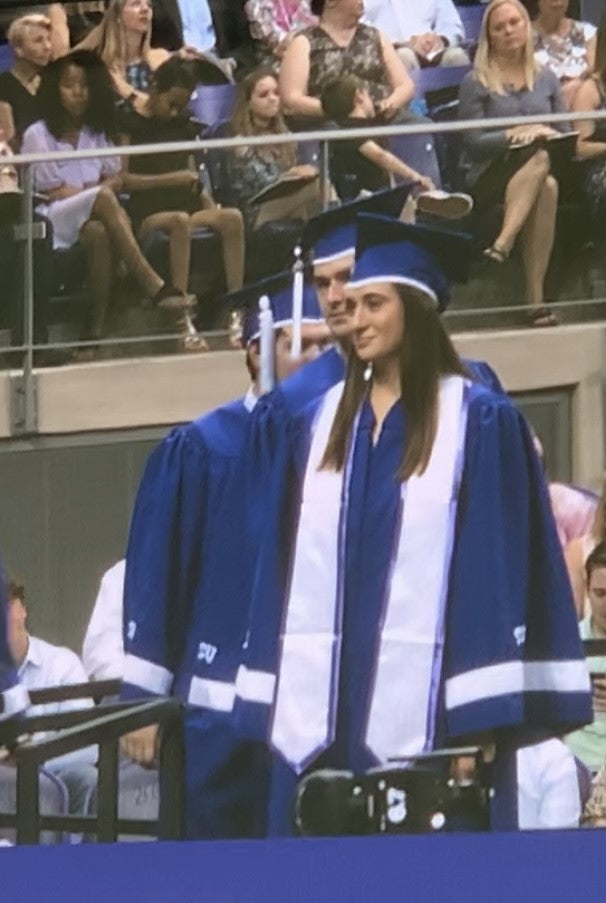 Jacey chose well! She has worn more purple in four years than most of us wear in a lifetime, culminating in a purple-robed walk as she graduated a proud TCU Horned Frog.