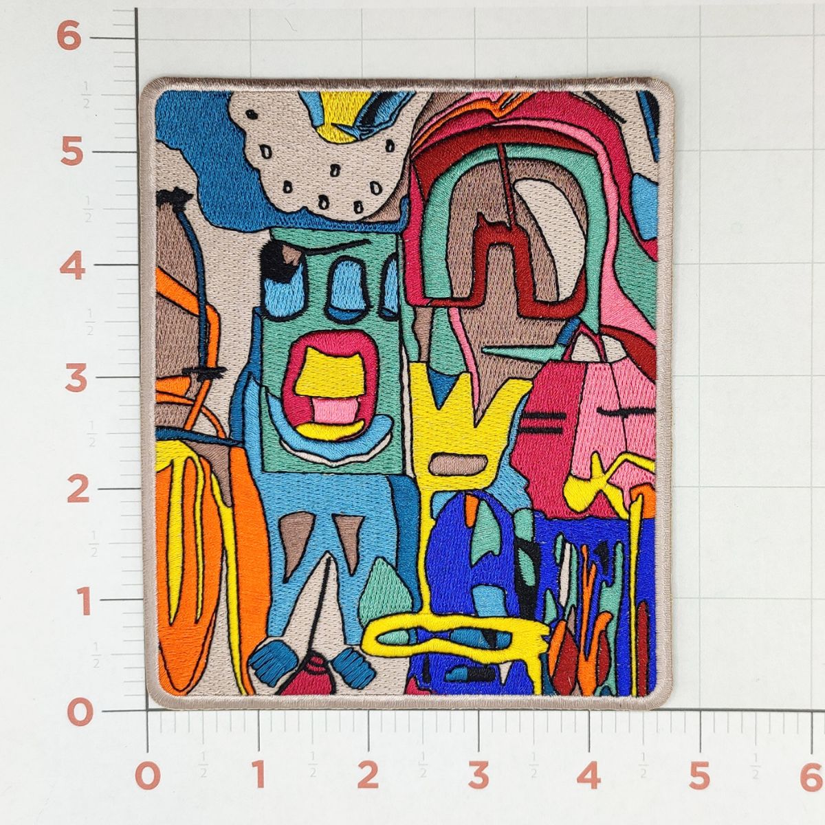 Our embroidered patches are directly inspired by my original paintings: layers of colors, textures, and fragments of life, transformed into something you can proudly wear every day.