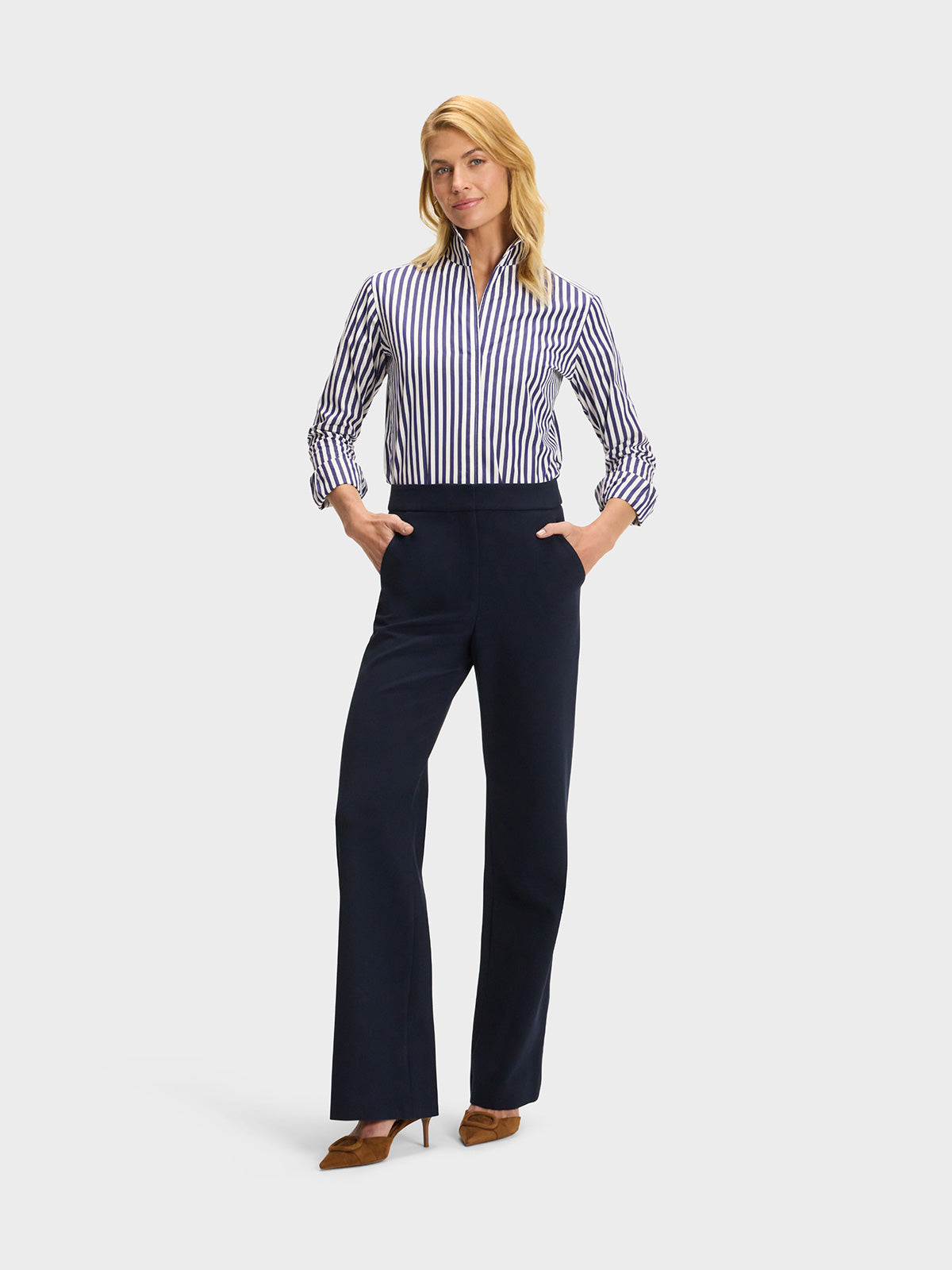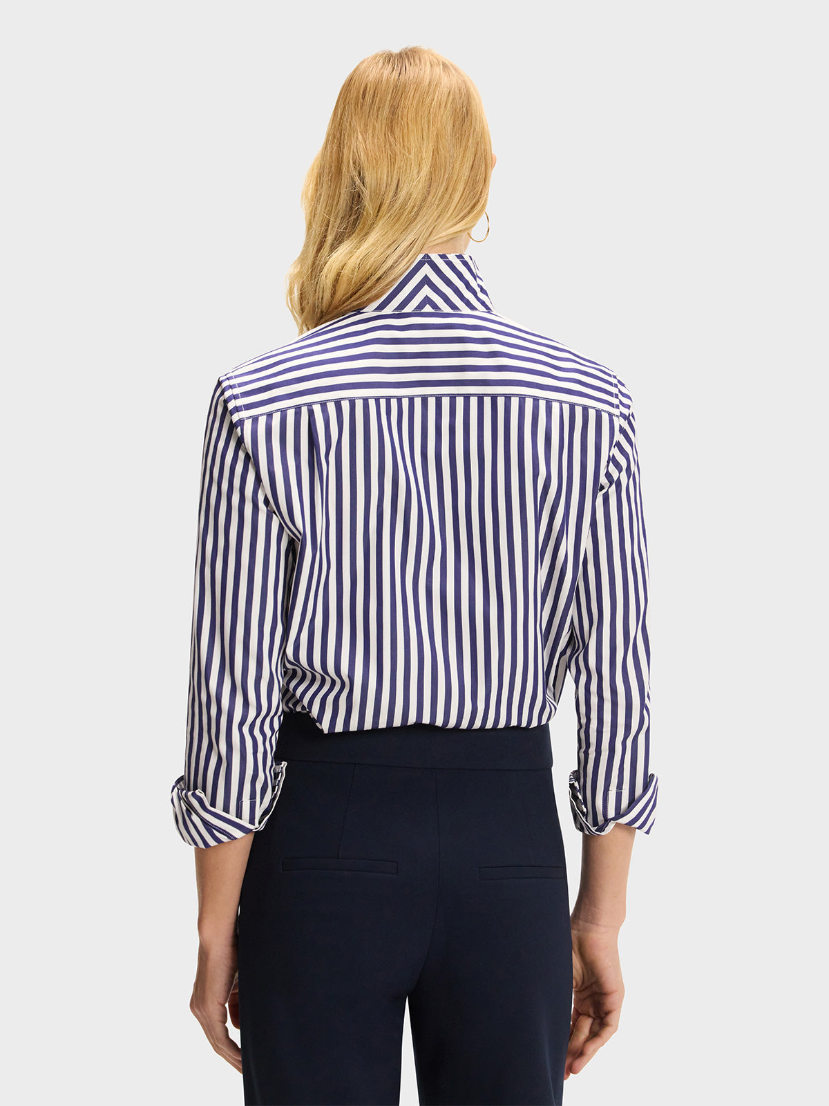 Our best-selling Signature Shirt in a navy blue and white stripe.