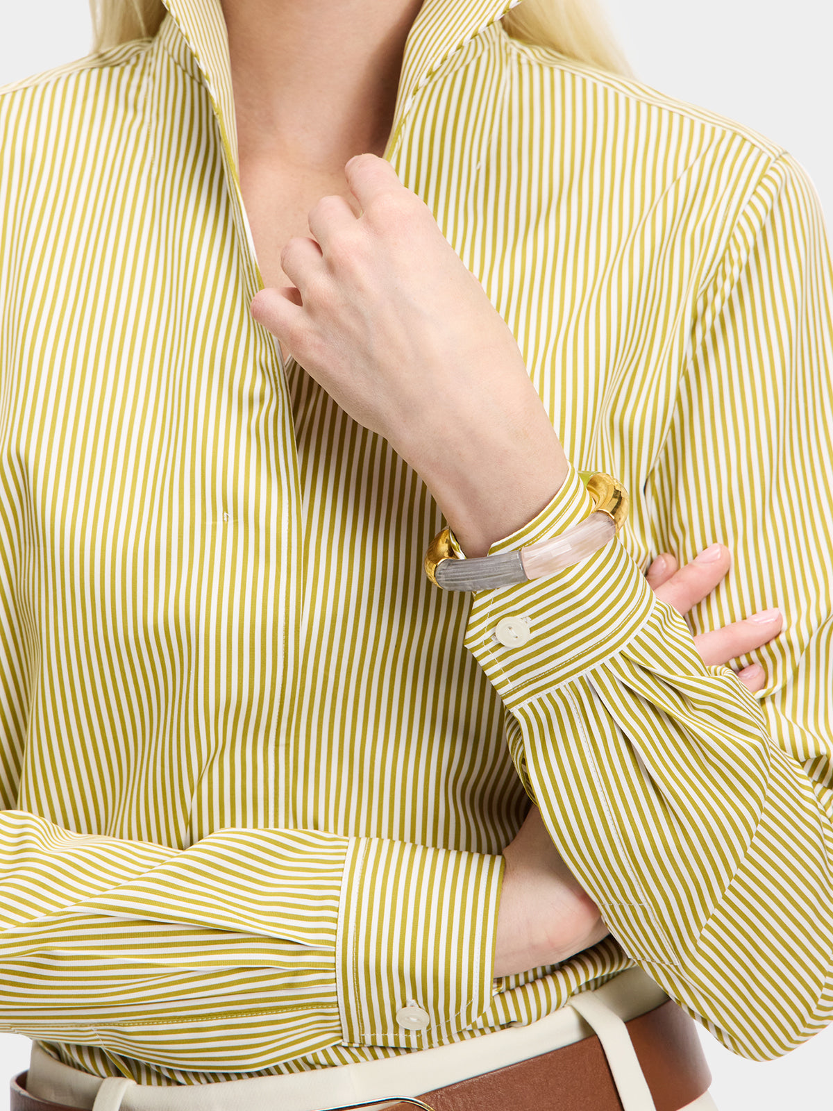 Our best-selling Signature Shirt in a chartreuse and white stripe.