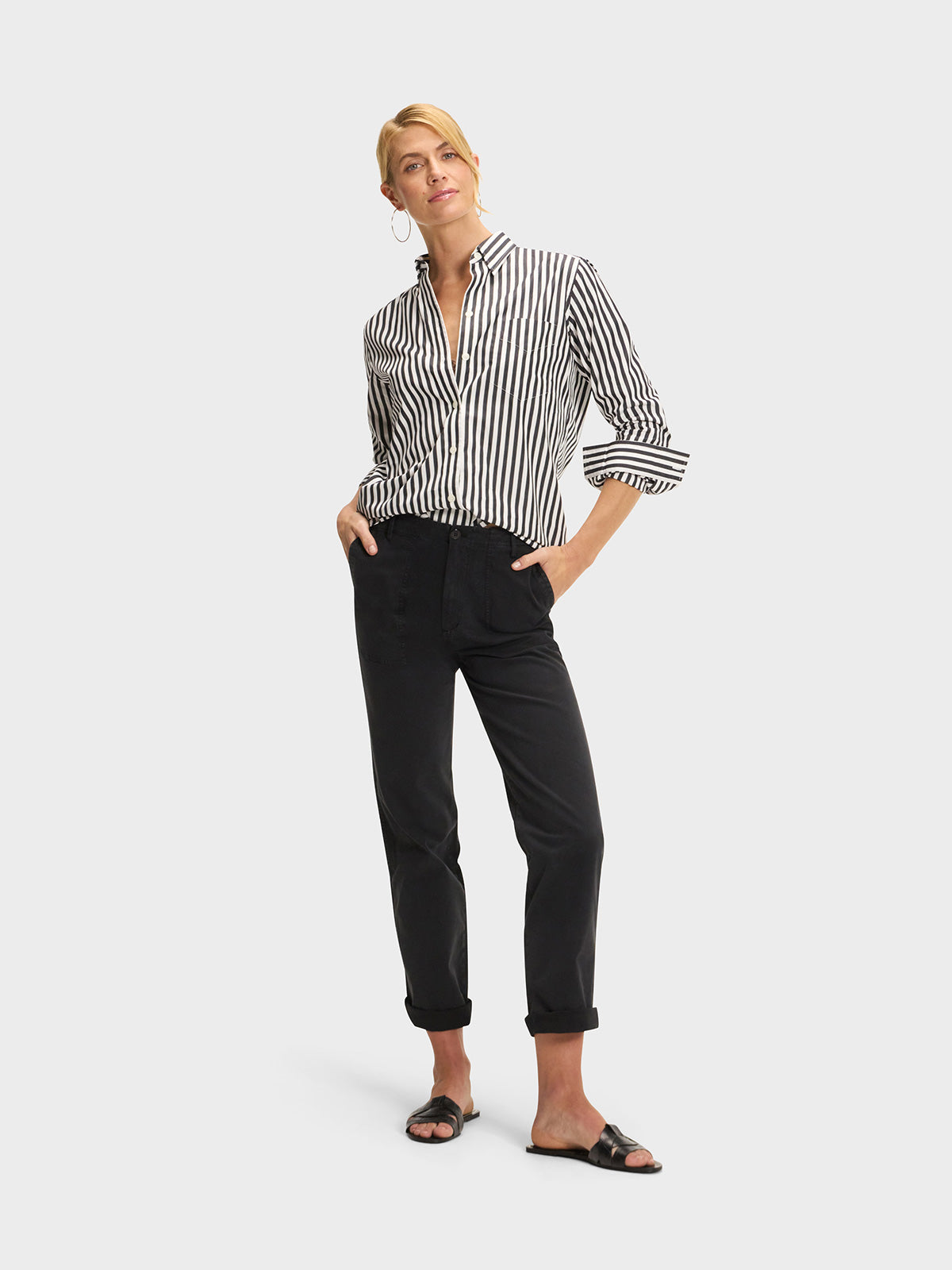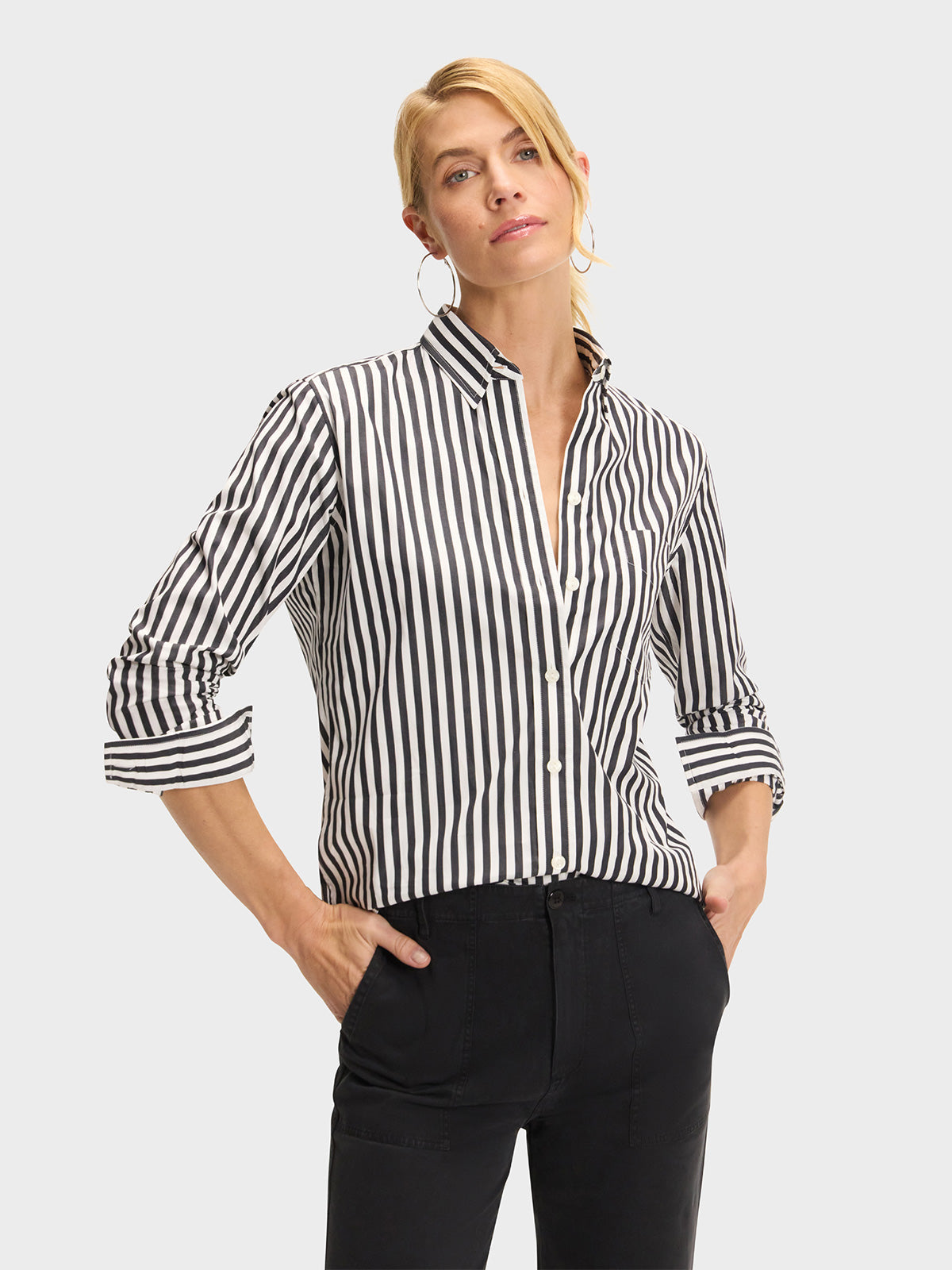 Our menswear inspired Weekend Shirt in a magical black & white broadcloth stripe.